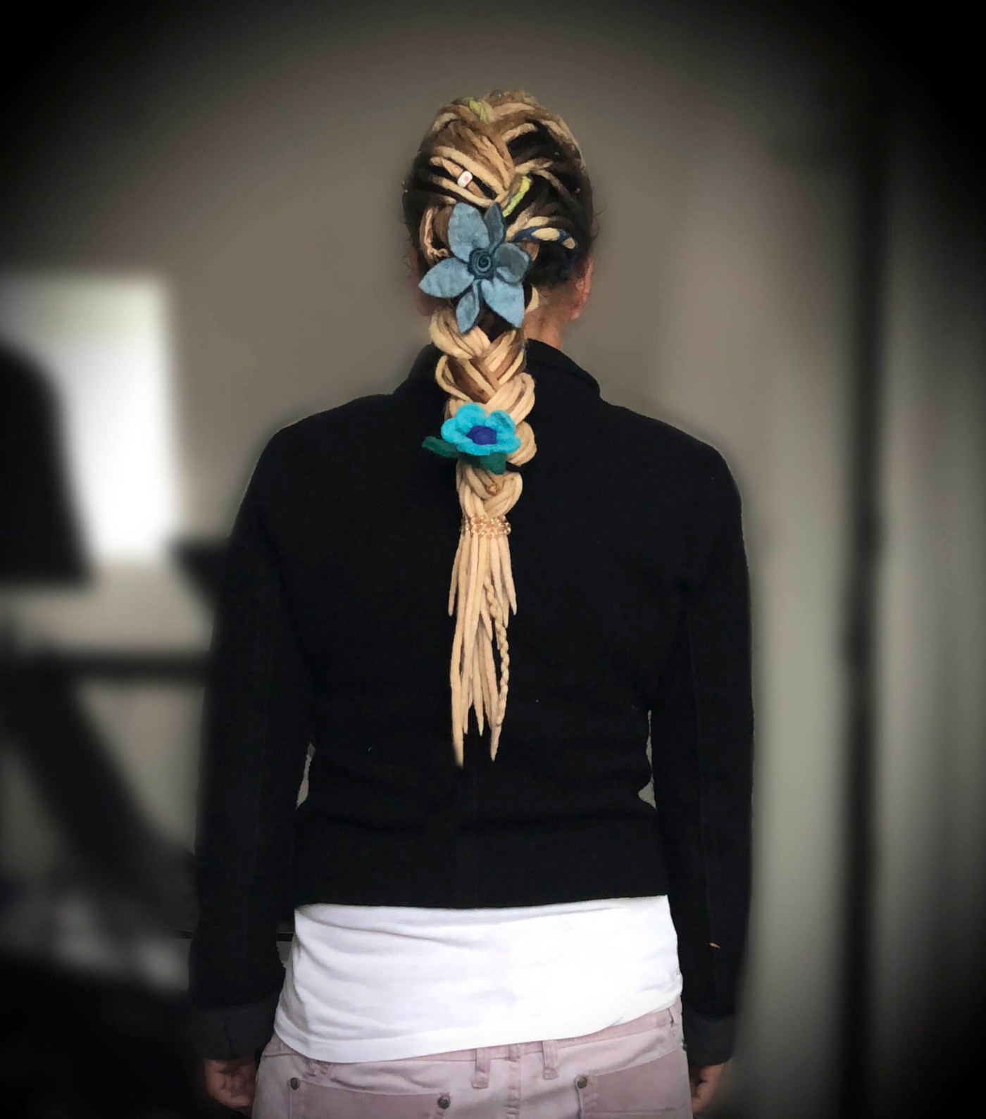 Und ja, das ist schön, dass du dich für Katinkas Wolldreads entschieden hast. Du wirst es nicht bereuen. Damit kann man einfach schöne Sachen zaubern und Volumen reinbringen 😉