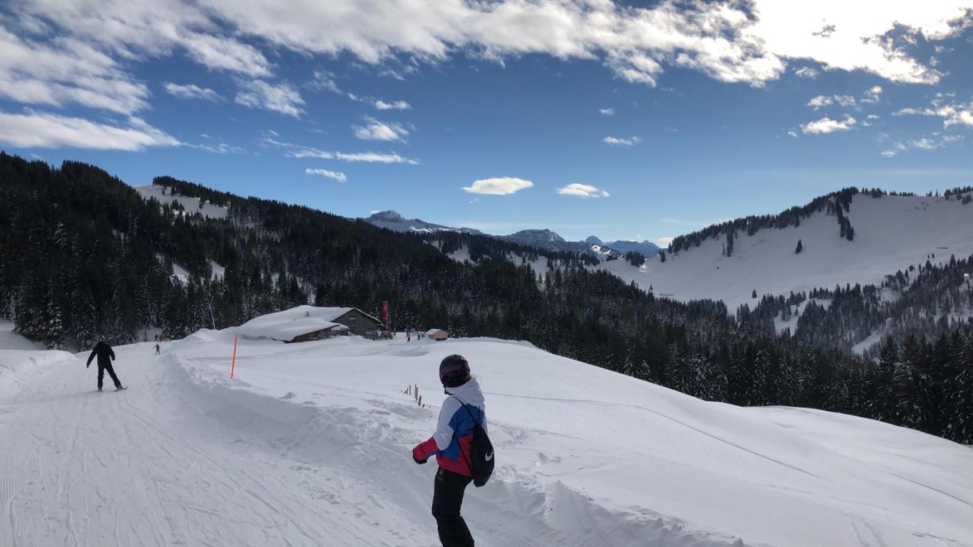 Alles richtig gemacht! Wir können auf die Piste und die Wanderer unter uns, gehen mit Schneeschuhen bewaffnet auf Wandertour.