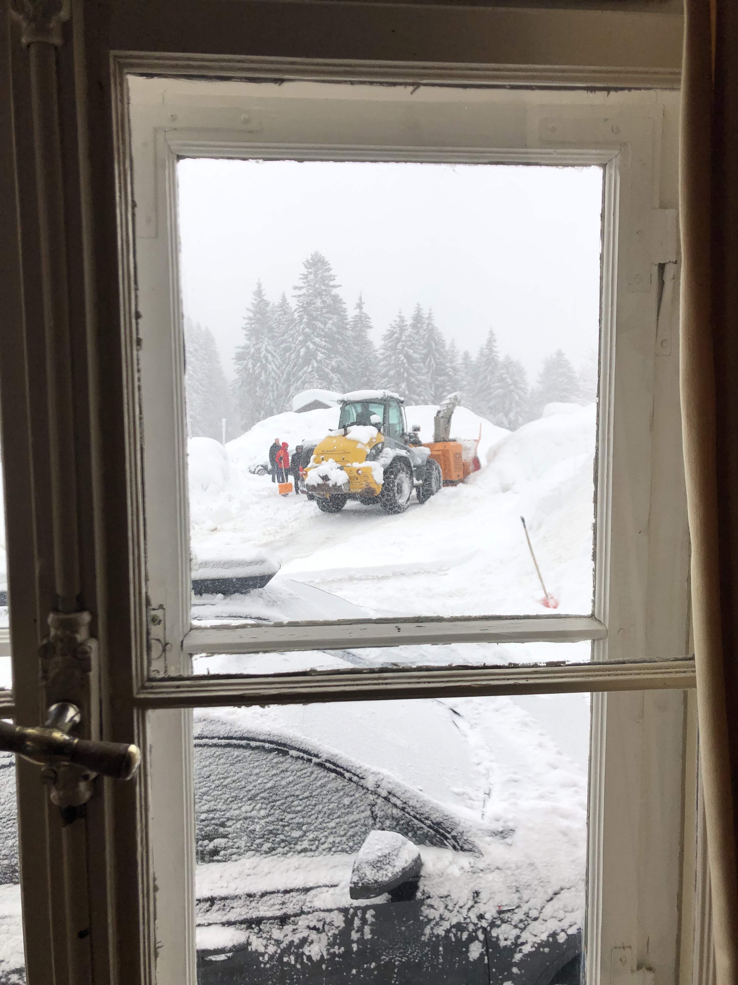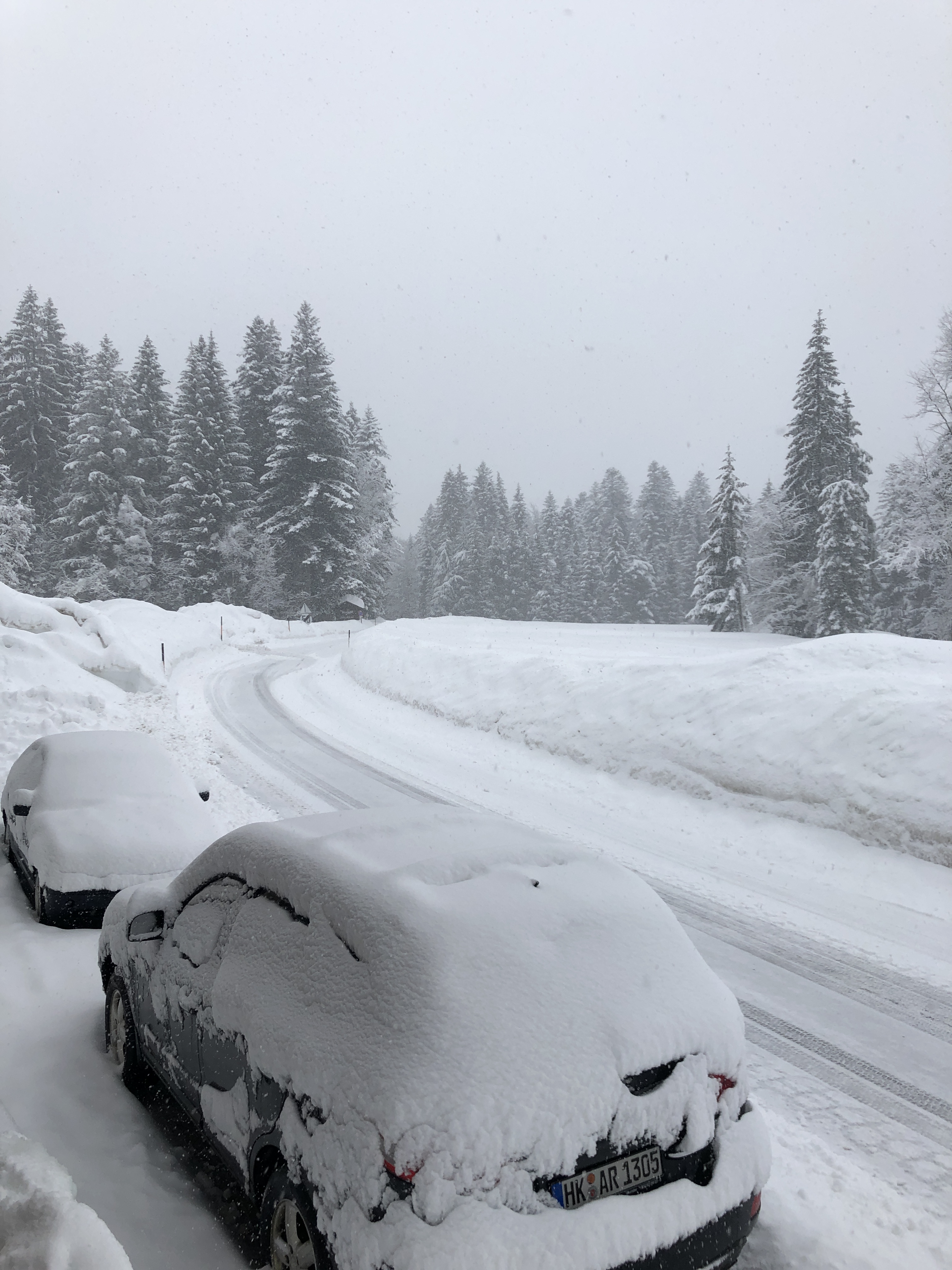 Wir brauchen eine gefühlte Ewigkeit, um die Autos für die Heimfahrt startklar zu machen. Uns hilft, Gott sei es gedankt, eine Fräse, die den vielen Schnee vom Parkplatz räumt.