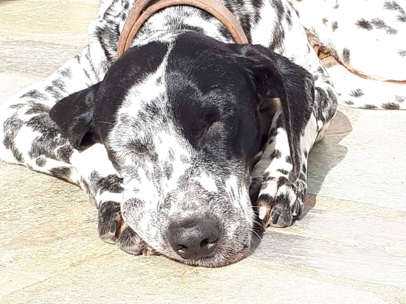 Sie schaut aus wie Georgia, nur ist sie wild gefleckt. Irgendwie haben sich da Pointer und Dalmatiner vermengt. Sie sieht lustig aus. Zunächst klicke ich sie weg. Zwei Hunde, denke ich, ich weiß nicht…