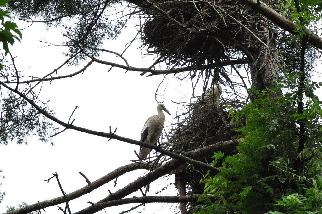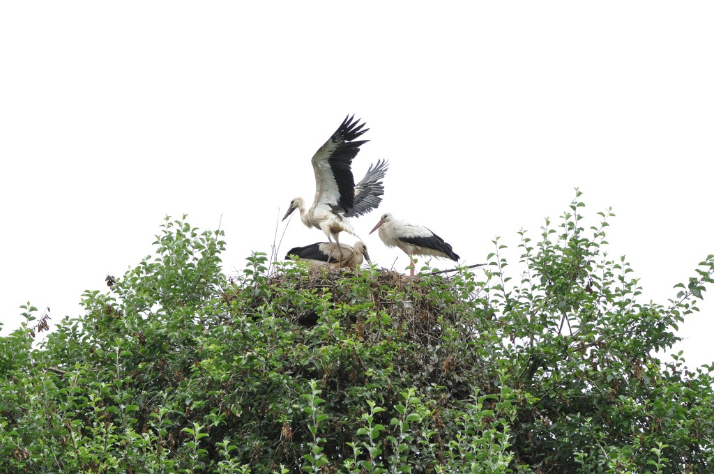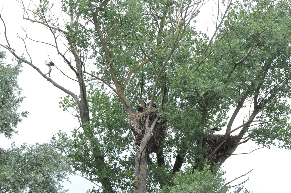 Hier brüten viele Störche noch usprünglich auf großen Bäumen.