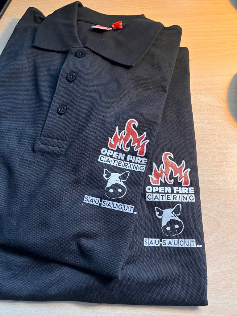 Zack… ein paar Tage später und schon sind die Polo-Shirts fertig gedruckt. Sehr gut schaut es aus.