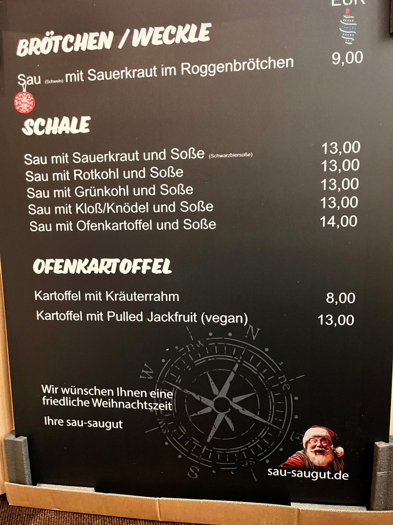 Als nächstes werde ich eine Speisekarte für den Weihnachtsmarkt entwickeln. Vorweg also alles fein säuberlich setzen und anschließend auf Alu-Dibond drucken lassen. Allerdings muss das bis Ende dieser Woche fertig sein. Etwas Druck lässt mal wieder anständig Flügel 🪽wachsen. 😃
